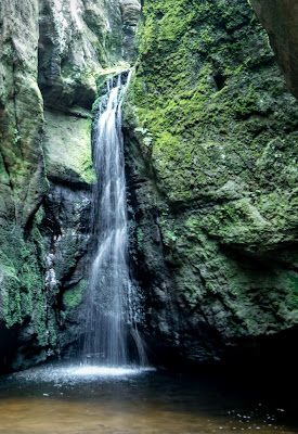 Kolejne warte uwagi miejsce to dwa wodospady - mały i duży. Z małego wypływa źródełko pitnej wody. Zauważyć tu można także popiersie Goethego - na pamiątkę jego pobytu w Skałach Adrspaskich 31 sierpnia 1790 roku.